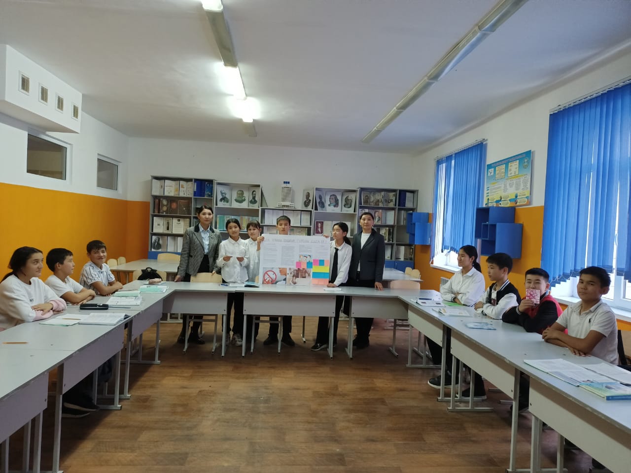 Тарих пәні мұғалімдері Байтұрғанова Майра және Сарсенова Асел 7 «Г» сыныбына «Сен өз құқығыңды білесің бе?» - атты дөңгелек үстел өткізді. Бұл іс-шараның мақсаты: Адамгершілік ізгі қасиеттер мен ар-ождан бостандығына, адалдық пен мейірімділікке баулу.