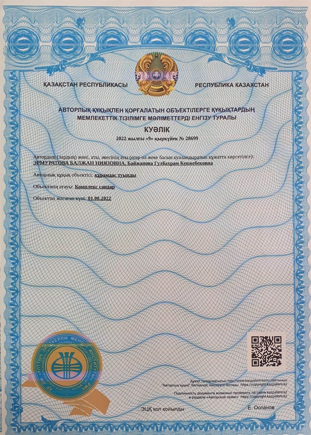 Математика пәні мұғалімдері Эрмуратова Балжан Ниязовна мен Байжанова Гулбахрам Кенжебековна әдістемелік нұсқаулықтар жазып, авторлық құқық куәліктерін алды. 11сынып оқушылары мен мұғалімдерге арналған кітаптың тигізер пайдасы өте зор. Ұстаздар мен оқушыларымыздың игілігіне жарар еңбектеріміз көп болсын!