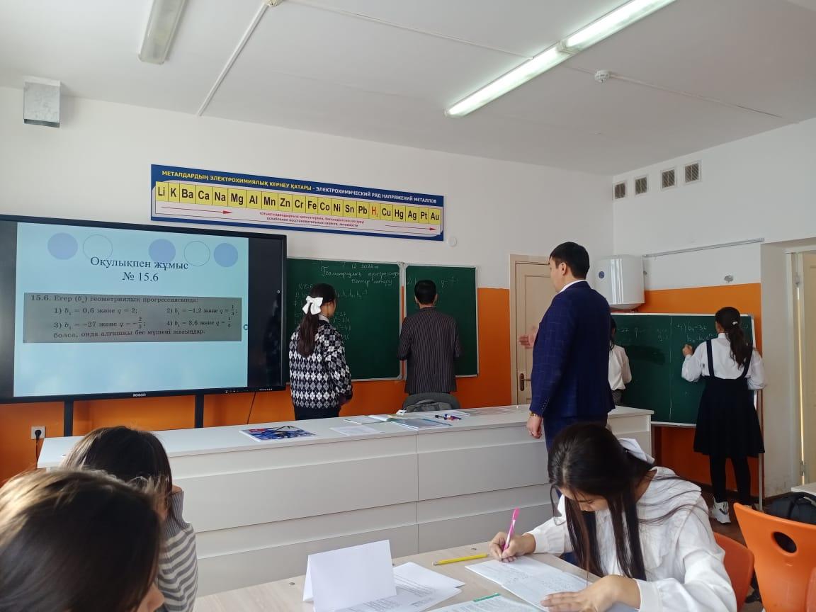 Шымкент қаласы білім басқармасына қарасты №69 жалпы орта білім беретін мектебінің математика пәні мұғалімі Тулегенов Бағдат Бақытжанұлы 9 "А" сыныбында "Геометриялық прогрессияға есптер шығару" тақырыбына ашық сабақ өтті. Сабақ барысында оқушылардың пәнге деген қызығушылығын арттыру мақсатындағы әдістерді қолданды. Оқушылар жеке, жұптық, топтық жұмыстар жасады. Пәнаралық байланыс болды. Сабақ өте қызық өтті.