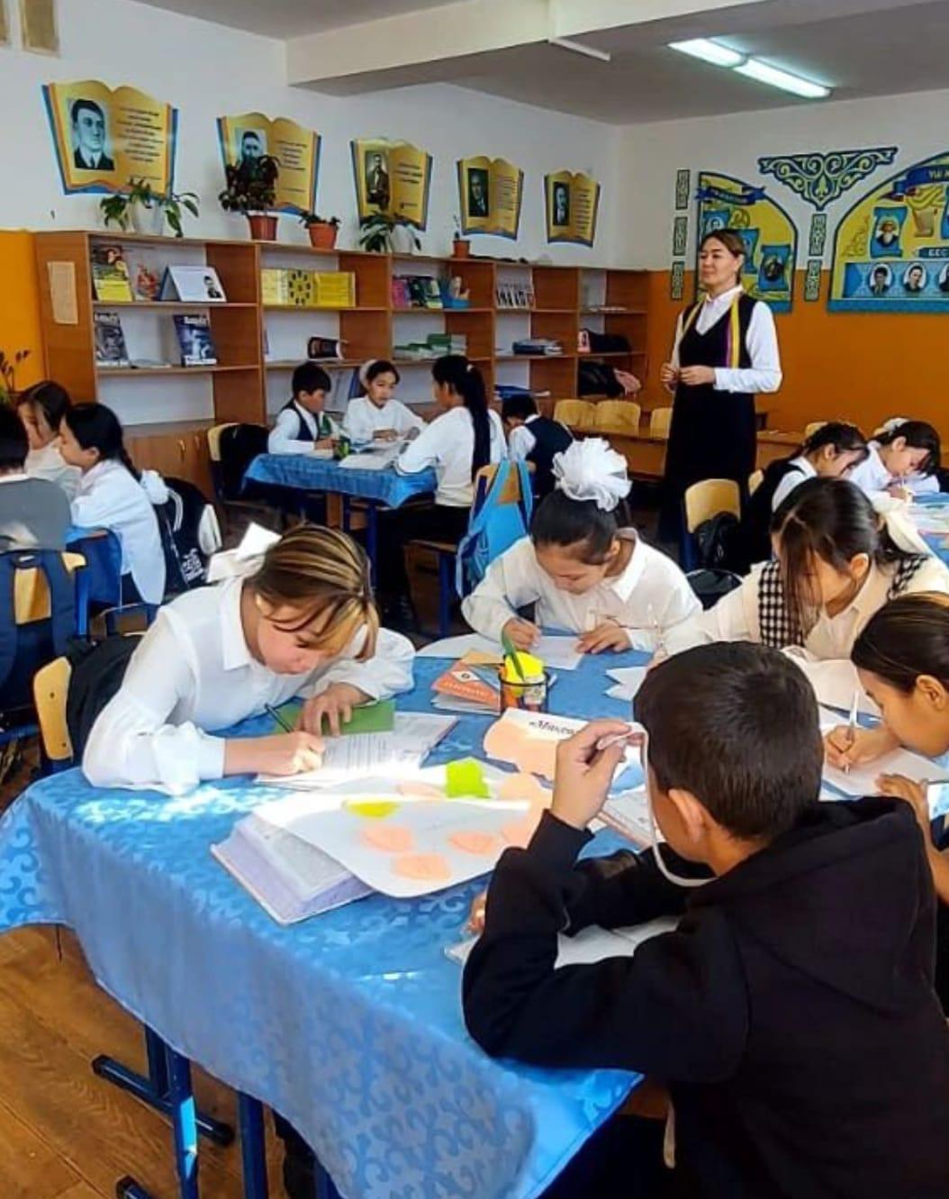 Шымкент қаласы білім басқармасына қарасты №69 жалпы орта білім беретін мектебінде қазақ тілі мен әдебиеті пәні мұғалімі Кузенбаева Банура 6"Ғ" сыныбымен қазақ әдебиеті пәні бойынша Сұлтанмахмұт Торайғыровтың "Шәкірт ойы" тақырыбында сабақ өтті. Сабақ барысында топтық, жұптық жұмыстармен және түрлі әдіс-тәсілдер арқылы оқушылардың сабаққа деген қызығушылығын арттырып қана қоймай әдебиетке деген сүйіспеншілігін арттырды.