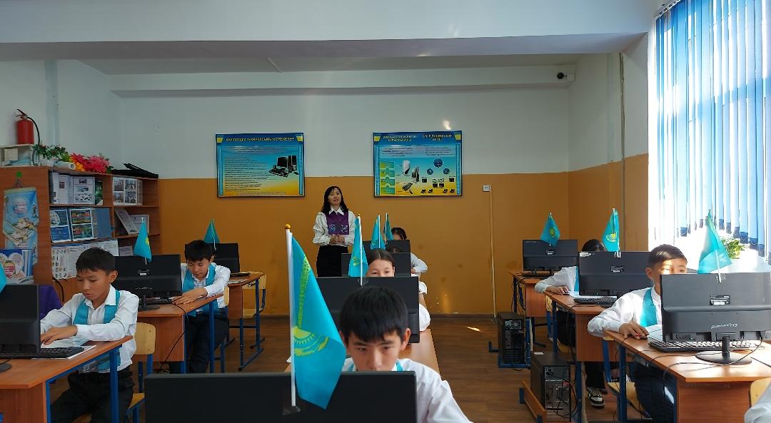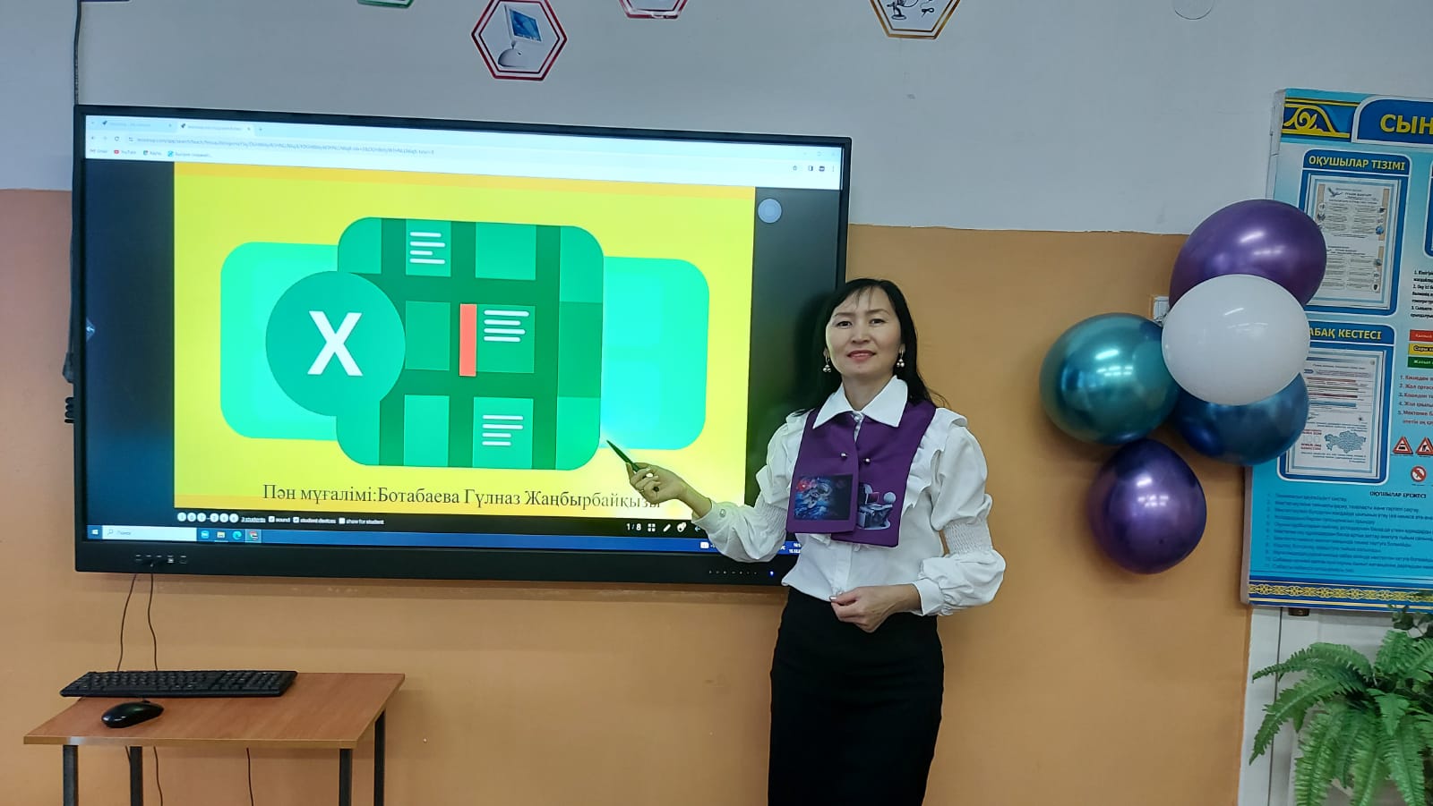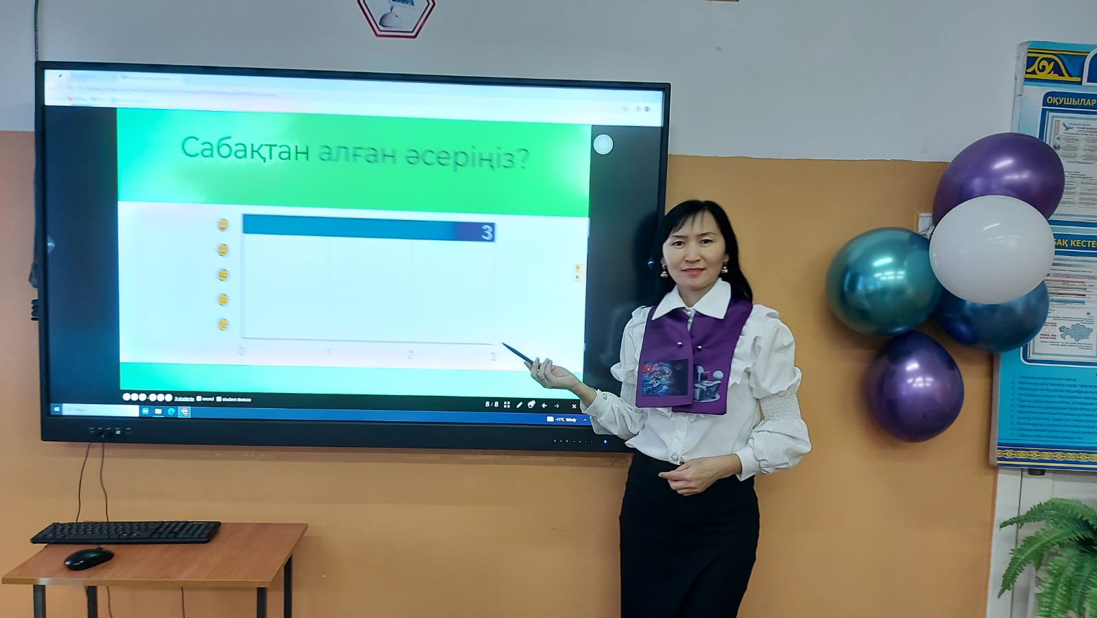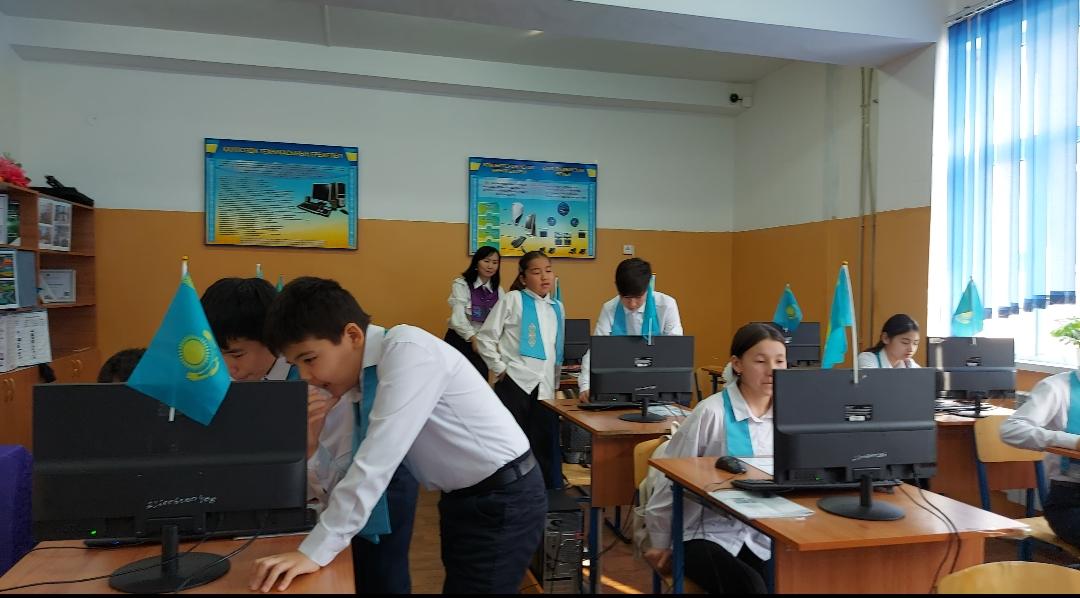 №69 жалпы орта білім беретін мектебі 2023-2024 оқу жылы барысында «ҒАЛАМТОРДАН ҒАЛАМШАРҒА» атты физика-информатика пәндері онкүндігі аясында информатика пәні мұғалімі Г.Ботабаева 15.12.2023ж күні 8 «В» сыныбымен «Қолданбалы есептер шешу» тақырыбында ашық сабақ өтті. Мақсаты: электронды кестені қолдана отырып есептерді шешуде кіріктірілген функцияларды қолдану, яғни күнделікті өмірде қолданылатын есептерді шығару. Үй тапсырмасын оқушылар өтілген функцияларды интертақтаға қолданып көрсету арқылы пысықтады. Жаңа сабақ түсіндіріліп, есепке шолу жасалды. Оқушылар тапсырмаларды практика жүзінде компьютерде орындап шықты, әр тапсырма соңында берілген балл бойынша диаграммалары автоматты түрде экранда көрініп отырды, сабақ соңына дейін 10 балға дейін орындап шыққан оқушылар болды. Тапсырмалар өте қызықты, оқушылар сабаққа белсене қатысты. Соңғы тапсырма топтық болды(MS Excel, MS PowerPoint, MS Word), экранда сұрақтарға жауап беру арқылы жарыса орындады. Соңында дұрыс және жылдам жауап берген топтарға орындар берілді. Сабақтан алған әсерлерін экранға шыққан смайликтер арқылы білдірді.