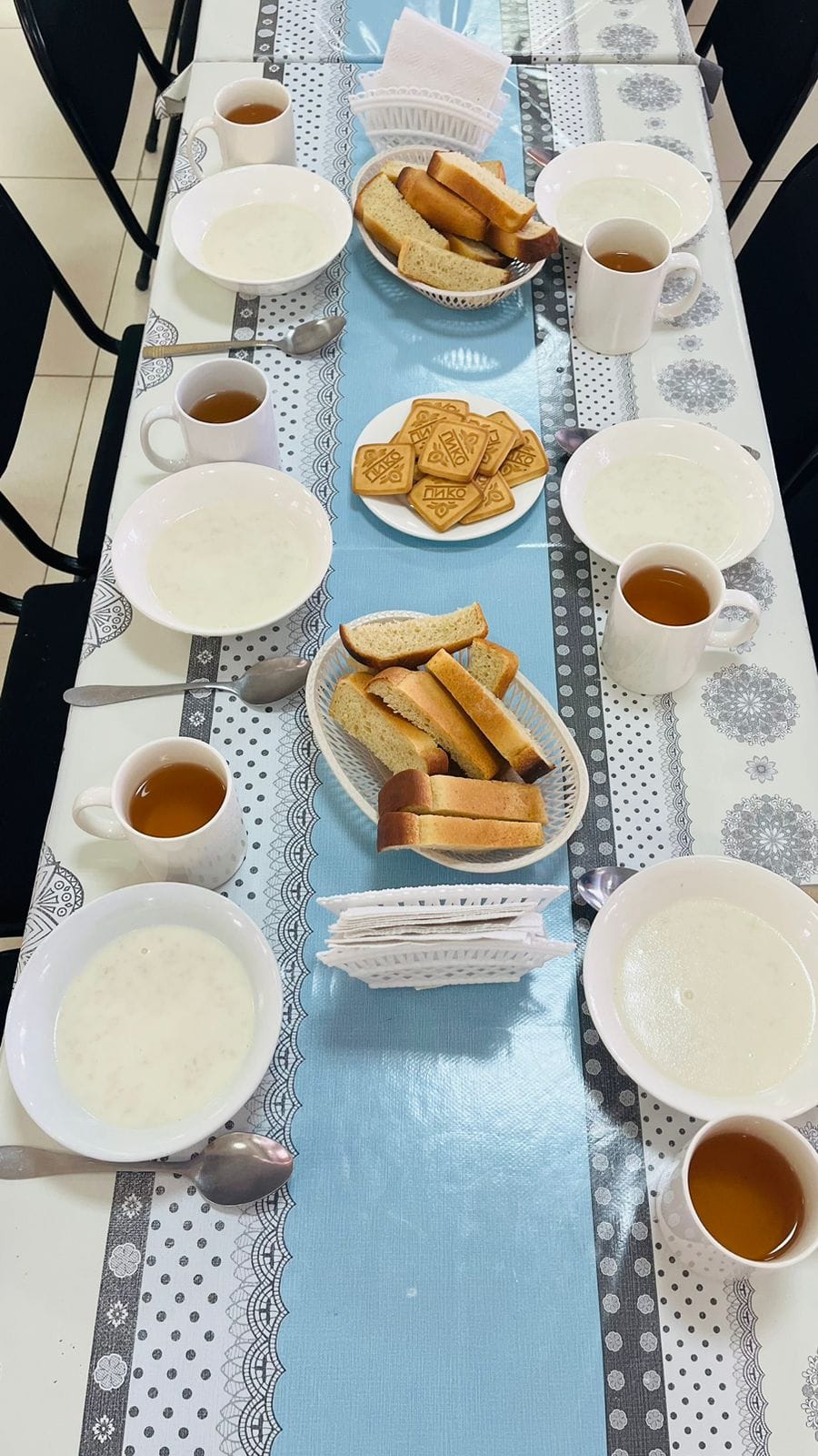 Асханада әр сыныптар үшін жеке үстелдер жайылған.Әр аптаға мектеп ата-аналарынан кезекшілік тағайындалып, кезекші ата-ана күнделікті берілген ыстық тамақты тексереді.