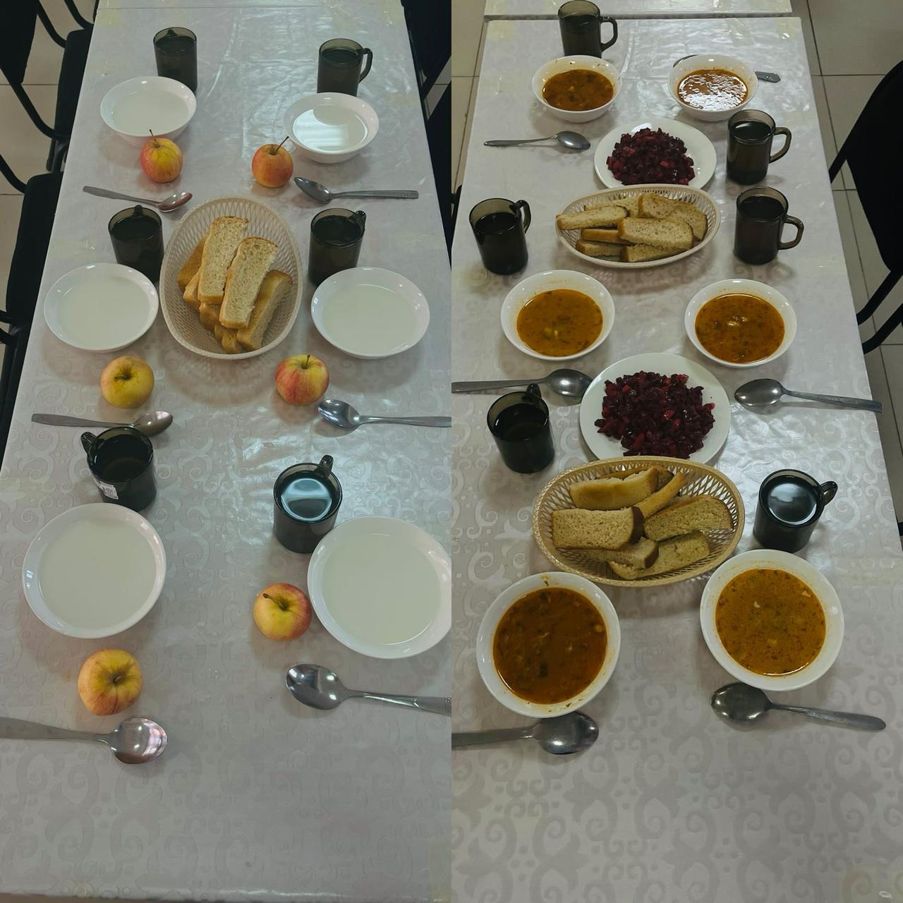 2 апталық ас мәзірі бекітіліп, әр сыныптың тамақтану кестесі жасалынған.Асханада әр сыныптар үшін жеке үстелдер жайылған.