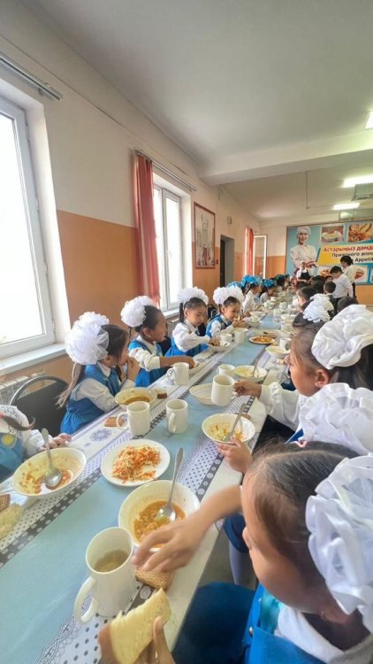 ҚР Білім және Ғылым министрлігінің 2020 жылғы 24 сәуірдегі №158 бұйрық 10-қосымшасы «Жалпы білім беретін мектептердегі білім алушылар мен тәрбиеленушілердің жекелеген санаттарына тегін және жеңілдетілген тамақтандыруды ұсыну» мемлекеттік қызметті көрсету қағидаларын, Шымкент қаласындағы білім беру ұйымдарында 1-4 сынып білім алушыларын тегін мектеп тамағымен қамтамасыз етуді ұйымдастыру туралы Шымкент қаласының әкімдігінің 2021жылғы 2 желтоқсандағы № 1524 қаулысын, қалалық білім басқармасынан бекітіліп берілген тәртібімен, қамқоршылық кеңесінің 2023 жылғы 31 тамыздағы №9 отырысының шешімін негізінде 2023жылдың 1 қыркүйегінен бастап 975 оқушы аз қамтылған отбасынан шыққан,299 бастауыш сынып оқушылары бір мезгіл ыстық тамақпен қамтылды.